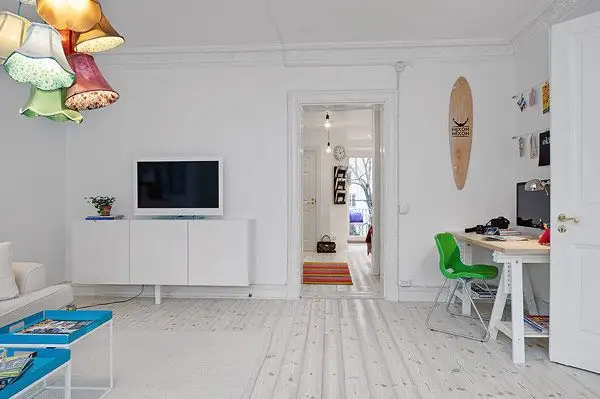 Ideile sunt numeroase. Un corp de iluminat colorat in diverse nuante se va integra perfect intr-un design specific scandinav, cu mult alb si forme lucioase si netede. O masuta de cafea din sticla aduce o nota sofisticata unui living.