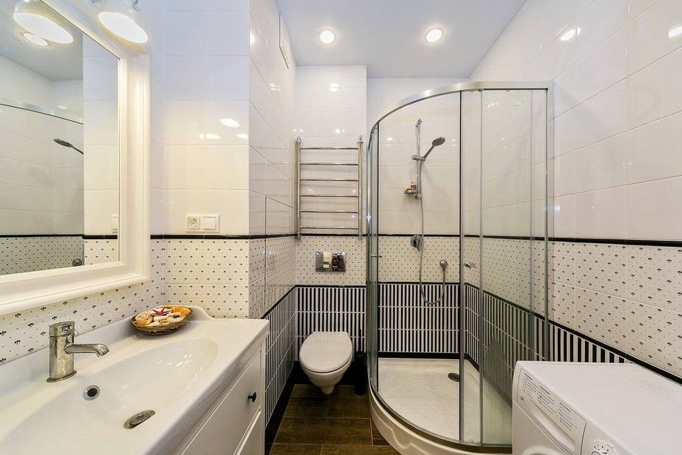 Tapetarea geometrica a baii cu detalii de linii si puncte nu doar ca scoate din anonimat intreaga incapere ci ofera confirmarea ca vorbim despre o amenajare inspirata din locuintele americane. Perfect luminata si marita de folosirea in exces a albului imaculat, aceasta camera devine un loc calitativ, gandit practic si functional.