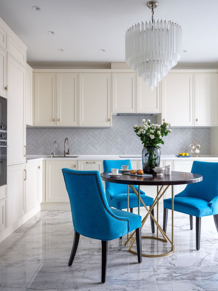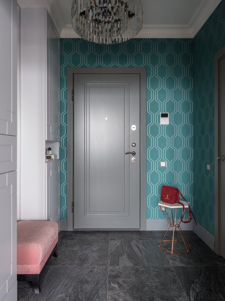 Proprietarul acestui apartament este o doamna tanara, activa, care aloca mult timp vietii profesionale si calatoreste mult. Locuind toata viata in zona de sud-vest a Moscovei, cumpararea propriului apartament intr-o zona exclusivista a orasului a fost un vis devenit realitate. Inca de la inceput, cand a apelat la serviciile unui birou local de arhitectura, a stiut ca doreste o amenajare intr-un stil modern cu puternice influente clasice. Un element cheie catre succesul rezultatului final l-a constituit si disponibilitatea clientului de a experimenta cu culorile si a alege nuante puternice, curajoase. Poate fi observata culoarea smarald a tapetului din hol, albastrul intens al chenarului dintre living si bucatarie, faianta si mobilierul turquoise din baie. Toate acestea, echilibrate de un decor de fond cald, neutru din punct de vedere cromatic. Au fost folosiet nuante de bej, crem, roz prafuit, gri deschis.