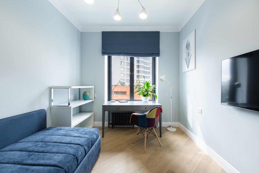 Camera copilului a fost gandita in acelasi spirit functional, cu zone de depozitare (un dulap spatios la intrarea in camera), spatiu pentru dormit si un birou din lemn masiv, amenajat la fereastra.