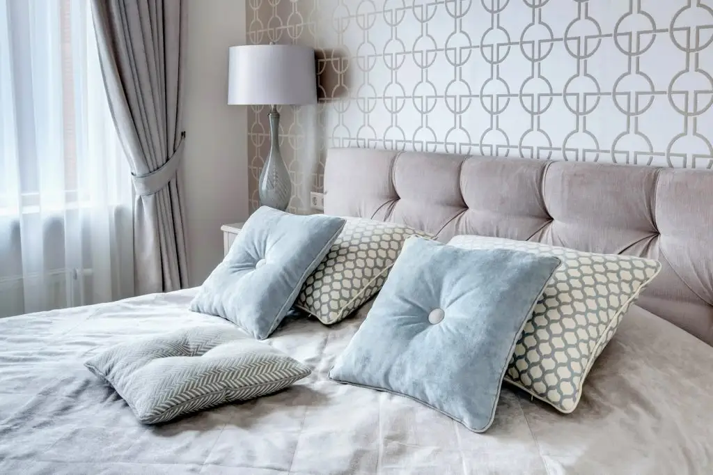 Pentru dormitorul cu dimensiuni mai reduse, se alege o canapea extensibila, o comoda si un dressing, totul pentru maximizarea spatiului si a confortului. Patternul geometric al canapelei, cat si designul noptierei si al comodei, aduc in discutie o imagine vintage, imagine ce se continua cu o veioza moderna si o masuta de cafea abstracta.
