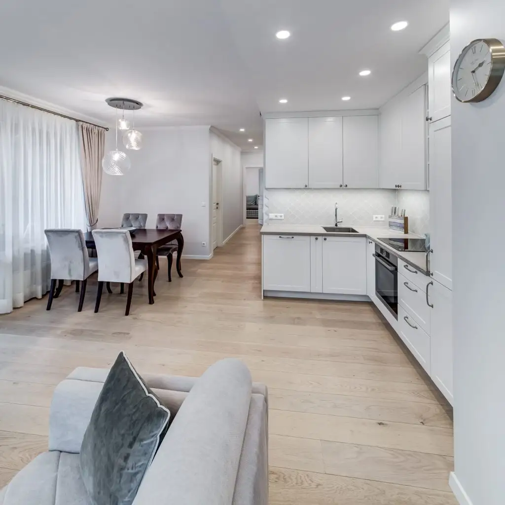 In cazul zonei de pregatire a mesei se opteaza pentru un mobilier simplu, minimalist, imaculat, luminozitatea capatand o insemnatate deosebita in acest caz. In ceea ce priveste spatiul dedicat relaxarii si cel de servire a mesei, mobilierul aduce o nuanta clasica, atat in ceea ce priveste design-ul cat si accesorizarea acestuia.