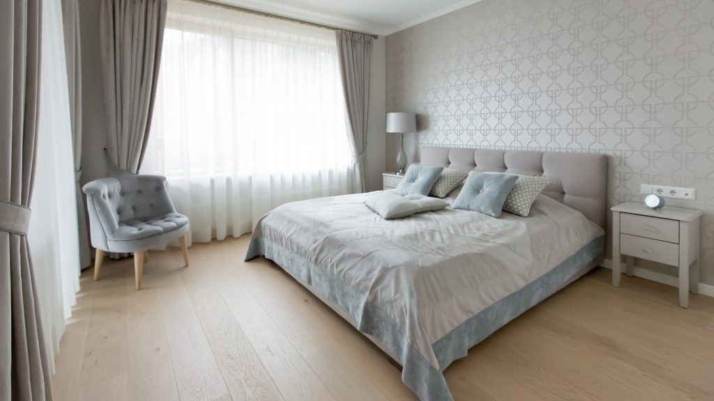 Dormitorul matrimonial se prezinta futurist si asta datorita tapetului satinat cu pattern geometric reliefat. Ideea de satin se pastreaza si in accesoriile textile cu care este prevazut patul dublu, pozitionat central, iar cu ajutorul veiozei, noptierei, fotoliului si dressing-ului, cele doua stiluri, clasic si modern, se imbina armonios si de aceasta data.