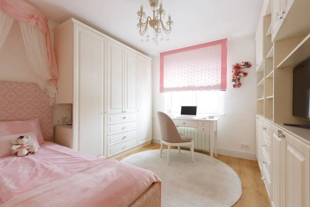 In cazul camerei de tineret, se alege o amenajare bazata pe derivate de roz, cu un mobilier incapator, perfect pentru depozitare. Aceasta incapere se imparte in doua zone, cea de relaxare si cea de desfasurare a activitatilor intelectuale. Vorbim in acest caz de un pat cu aspect diafan, desprins din povestile copilariei, o biblioteca, un sifonier generos si un birou. Mobilierul se prezinta imaculat, cu o linie simpla, iar la acesta se adauga numeroase accente textile cu aspect delicat.