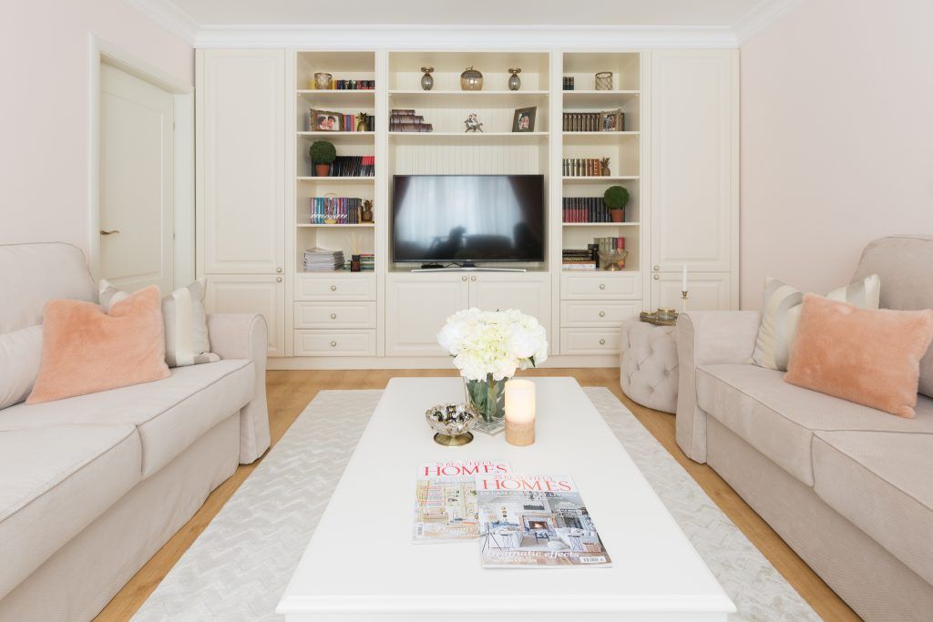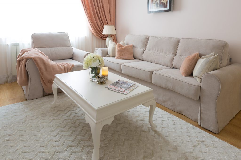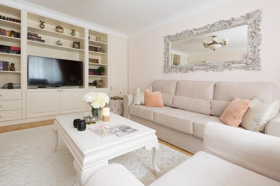 Livingul vine in continuarea bucatariei cu o simetrie aparte, pozitionand doua canapele identice in oglinda si asezand in mijlocul acestora o masa dreptunghiulara eleganta. Cele doua canapele impreuna cu fotoliul, transmit ideea de spatiu, loc de relaxare si socializare. Din punct de vedere al coloristicii, se opteaza pentru includerea accentelor de roz somon, nuanta ce asigura atribuirea unei atmosfere primavaratice si calde.