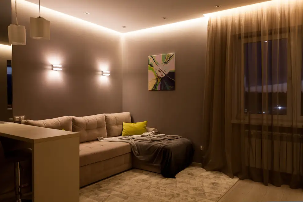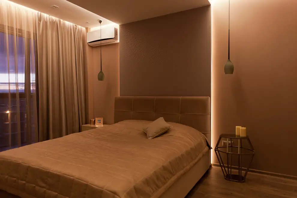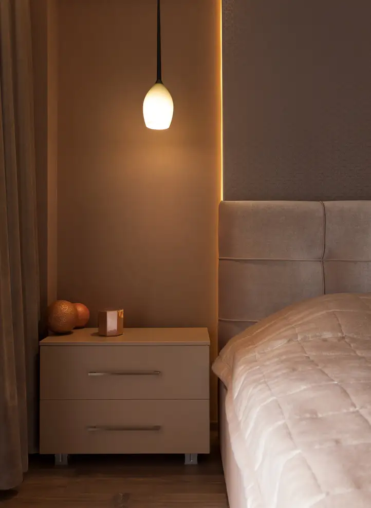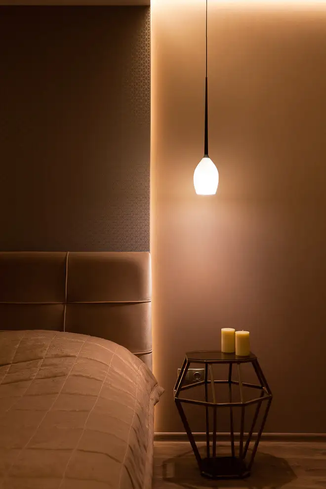 Iluminatul discret, specific stilului romantic, este reprezentat de benzile de led ascunse in spatele scafelor murale.