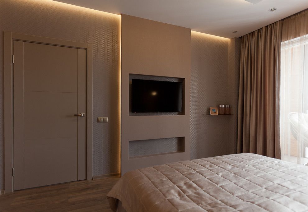 Cum modernul nu se lasa mai prejos, o buna parte din peretele despartitor incastreaza in spatele unei usi glisante un birou si un scaun de mici dimensiuni. Tot din familia accesoriilor moderne putem enumera electrocasnicele, noptierele, usile si tabloul abstract.