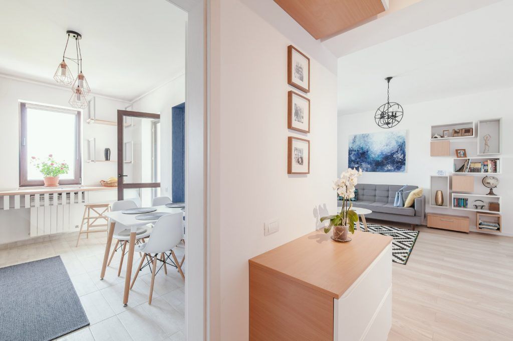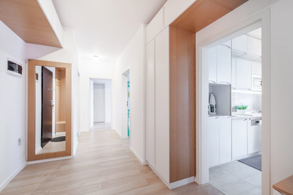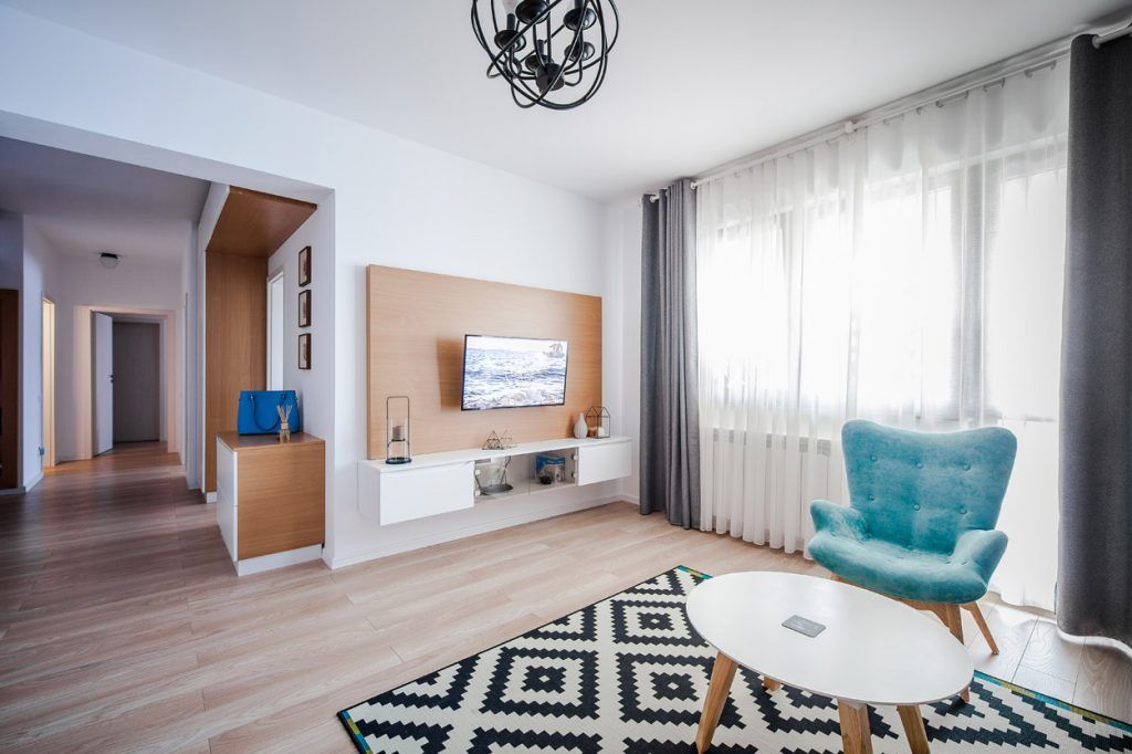 Stilul scandinav a fost sursa de inspiratie principala pentru amenajarea dorita de catre clienti. A fost conturata astfel o atmosfera calda, luminoasa, cu texturi si culori naturale. Predomina albul mat ca finisaj al peretilor si nuantele de lemn deschis ale mobilierului, caracteristici definitorii ale designului scandinav.