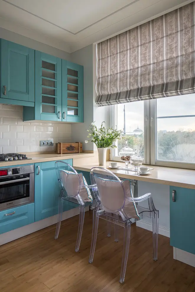 Blatul amenajat in fata ferestrei face ca fiecare masa sa fie una speciala. Excelenta idee de pus in practica atuncicand ai de amenajat o bucatarie micasau cand panorama este una deosebita.