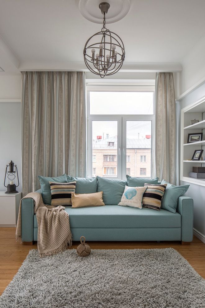 Incaperea din stanga livingului, ceea ce ar fi putut fi un spatiu pentru birou, a fost amenajat ca o camera de oaspeti. Canapeaua intr-un bleu-ciel este punctul de atractie al incaperii, iar decoratiunile sugereaza din nou motivul marinaresc.