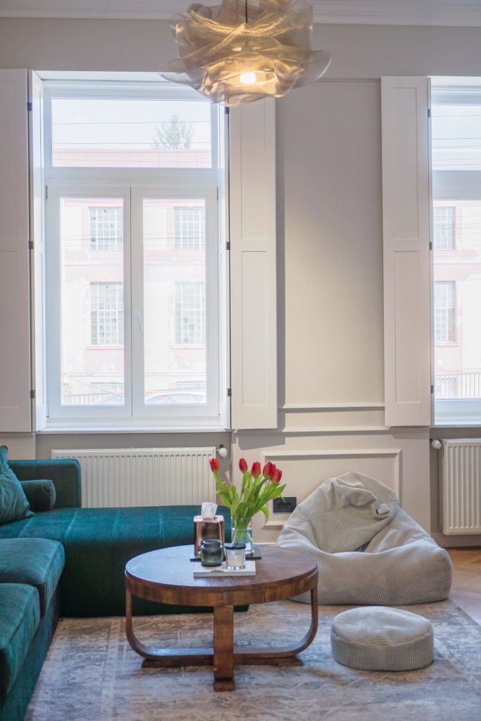Unul din avantajele decisive in alegerea acestui apartament a fost chiar inaltimea mare a camerelor, 3.70 metri si dimensiunile generoase ale geamurilor care permit luminii naturale sa inunde frumos camerele.