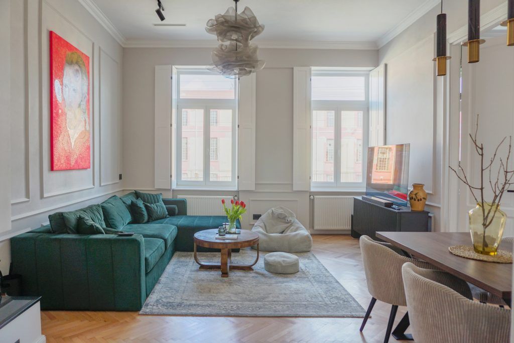 Iubitori ai pieselor de mobilier vechi, restaurate, al detaliilor cu valoare istorica si sentimentala, beneficiarii au propus un stil eclectic pentru renovarea apartamentului: predomina modernismul cu influente clasice ce trimite cu gandul la aerul parizian al caselor cu obloane mari de lemn natural.