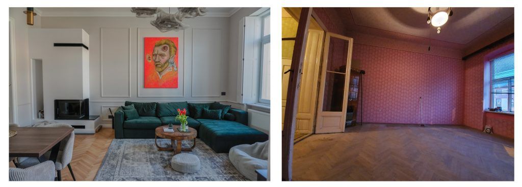 Nelocuit de 15 ani, apartamentul prezenta o serie de probleme atat la nivelul instalatiilor cat si estetice, finisajele fiind destul de deteriorate. Insa Adela a vazut potentialul acestui apartament, dincolo de patina timpului si au decis ca acesta era apartamentul potrivit pentru a-l transforma in locuinta mult visata.