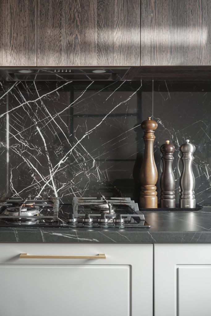 Au integrat un semineu modern cu accesorii metalice antracit si elemente de granit negru