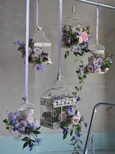 Coliviile metalice, suspendate sau folosite pe post de suporturi pentru flori sunt un artificiu de efect al decorului shabby chic