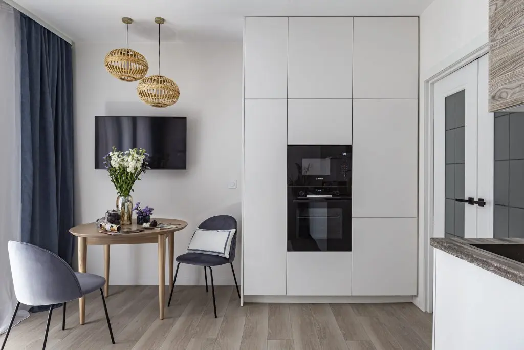 Garsoniera dispune de 31 de metri patrati, spatiul fiind compus din baie generoasa, un hol de intrare cu dulap incastrat, camera principala cu rol de bucatarie, living si zona de luat masa si un balcon conceput ca o oaza de relaxare.