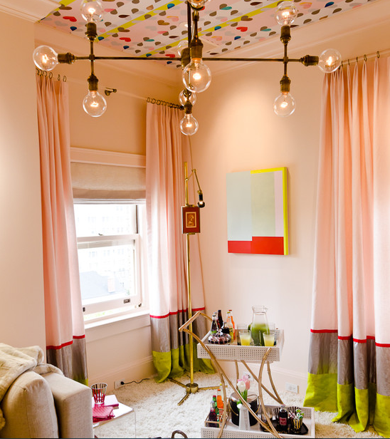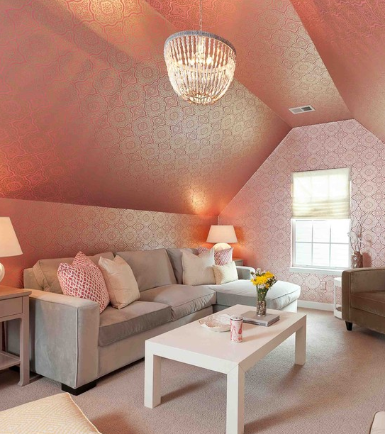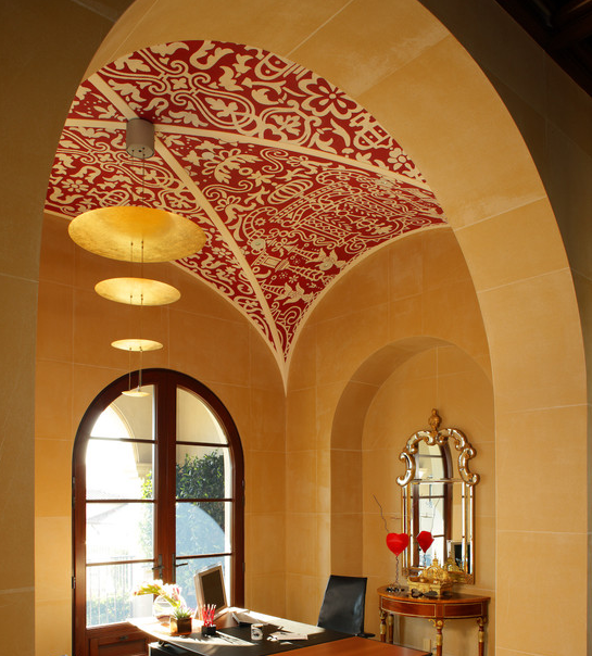 Tapetul aplicat pe tavan poate fi si el o solutie pentru infrumusetarea casei. Un imprimeu sofisticat poate da amenajarii o anumita profunzime care impresioneaza din punct de vedere vizual. De asemenea, cu ajutorul unui sablon, se pot picta diverse modele.