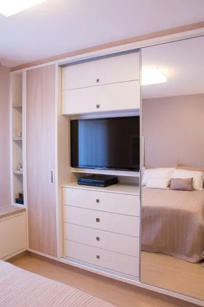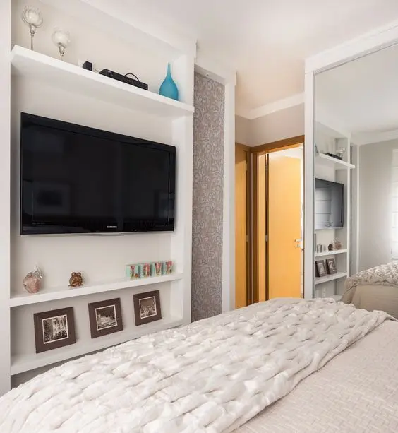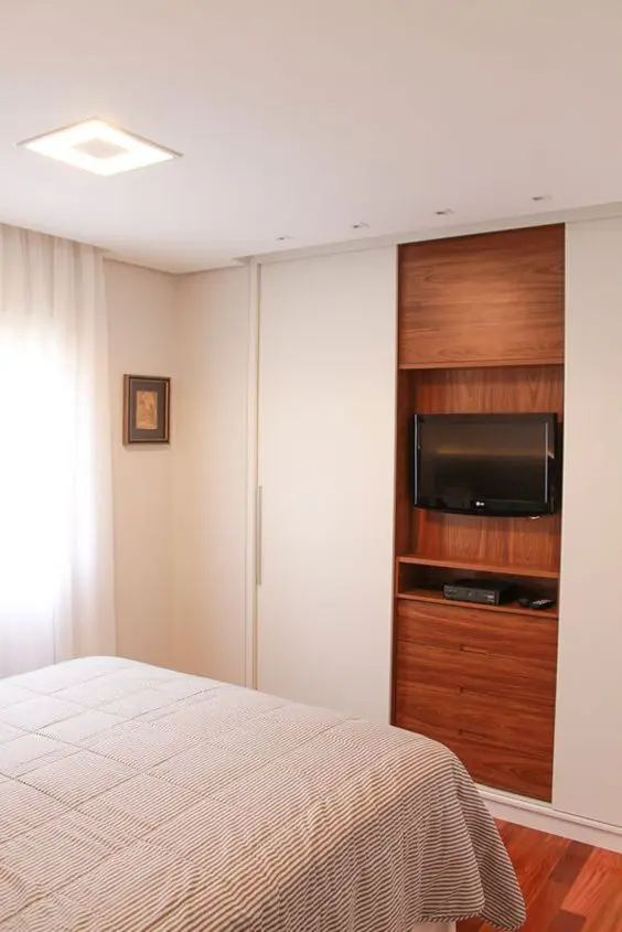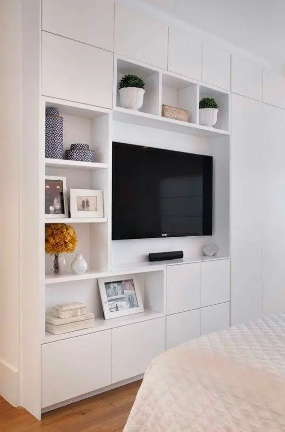 Solutii exista si pot fi din cele mai creative. De exemplu, daca inca nu am ales mobilierul, ne putem orienta spre un model care sa ne permita sa incastram televizorul in corpul dulapului, un gol cu functie de a adaposti televizorul, acest lucru presupunand o executie pe comanda. In aceeasi masura, televizorul poate fi montat pe una din usile dulapului tip dressing, celalalte ramanand mobile pentru a se deschide si inchide in spatele celei fixe care sustine televizorul.