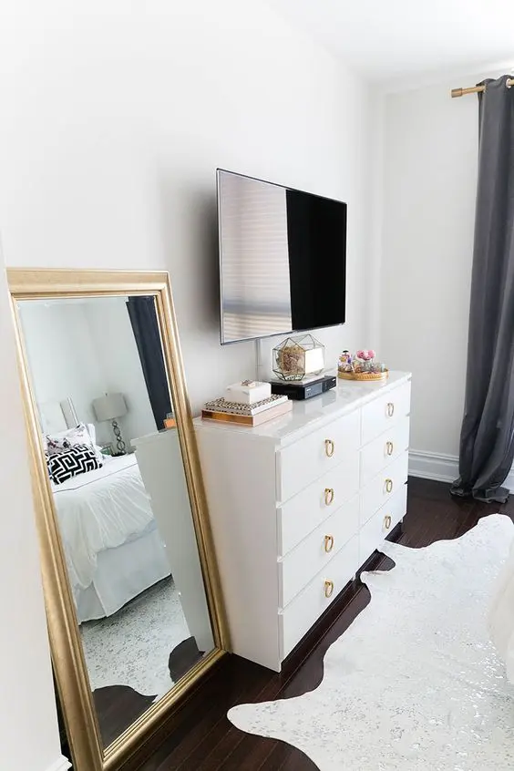 Comoda din dormitor poate fi cea mai simpla metoda, televizorul fiind asezat pur si simplu pe ea. Daca nu iti doresti acest lucru, mergi pe varianta de a suspenda televizorul, mai exact de a-l monta pe perete, asemenea unui tablou.