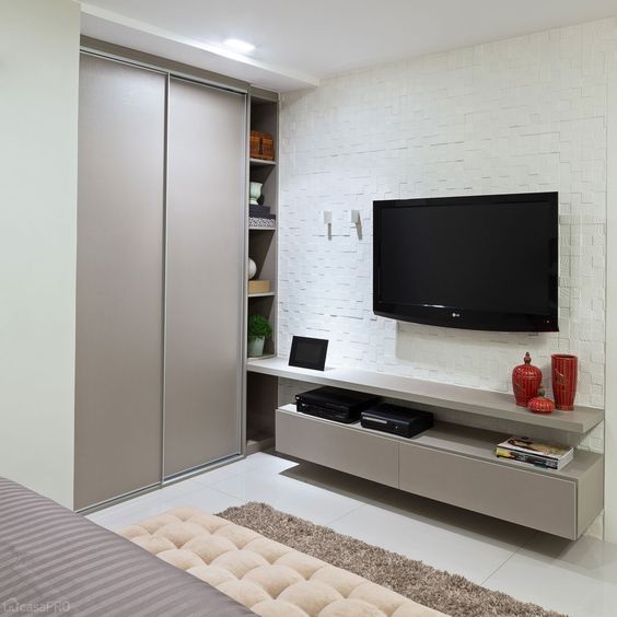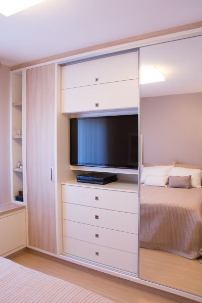 Solutii exista si pot fi din cele mai creative. De exemplu, daca inca nu am ales mobilierul, ne putem orienta spre un model care sa ne permita sa incastram televizorul in corpul dulapului, un gol cu functie de a adaposti televizorul, acest lucru presupunand o executie pe comanda. In aceeasi masura, televizorul poate fi montat pe una din usile dulapului tip dressing, celalalte ramanand mobile pentru a se deschide si inchide in spatele celei fixe care sustine televizorul.