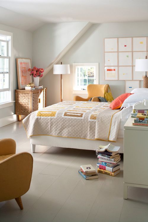 Deschide GaleriaCulorile indraznete precum oranjul, albastrul, verdele, in diverse combinatii inlocuiesc treptat, paleta cromatica de neutre cu care ne-am obisnuit. Bineinteles, toate intr-un echilibru necesar calmului dormitorului. Nuantele vii vin fie sub forma vopselurilor pentru pereti, in functie de accentul dorit, fie sub forma accesoriilor si decoratiunilor sau chiar a lenjeriilor de pat.