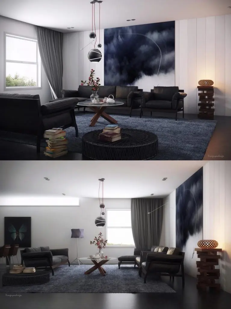 Un candelabru victorian si un mobilier minimalist cadrul perfect pentru o atmosfera unica in propriul tau living.