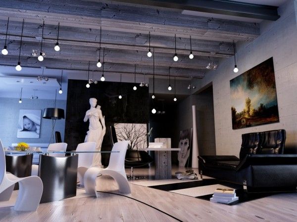 Aspectul industrial al acestui living emana modernitate si un bun-gust aparte.