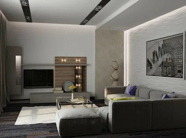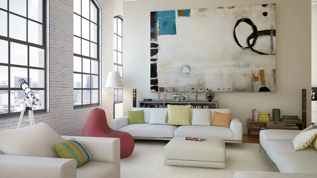 Arta pe perete si lemnul, toate imbinate intr-un decor alb foarte modern.