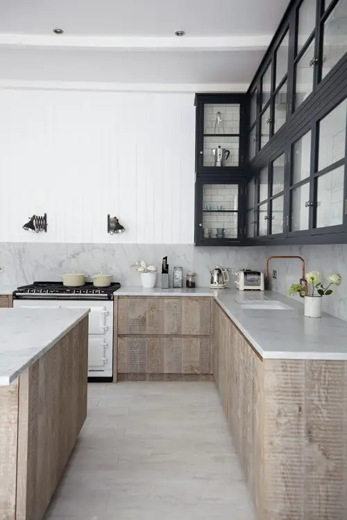 Perspectiva in amenajare se schimba. Etajerele si rafturile iau locul clasicelor dulapuri. Se creeaza astfel un spatiu mai aerisit, potrivit pentru a expune cartile de gatit, cestile preferate sau chiar farfuriile colorate. Bineinteles, ca puteti pastra dulapurile inchise in special in partea inferioara a bucatariei.