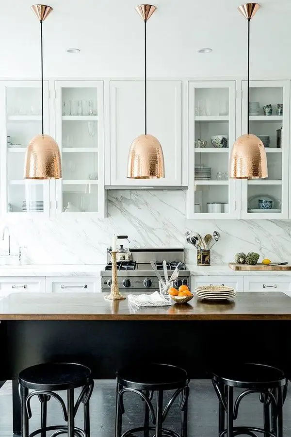 Corpurile de iluminat metalice, din cupru, bronz, in general metale in nuante calde reprezinta o tendinta care a castigat teren inca din 2014. Mizati pe aceste trasaturi pentru a impacta; puteti combina cu robineti vintage in culori asemanatoare.