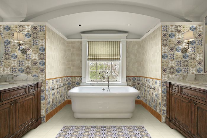 Placile decorative cu modele geometrice pot fi folosite atat in amenajarea bailor cat si a bucatariilor, fie ca accent pentru pereti, fie pentru a delimita o anumita zona, sau chiar pentru pardoseala.