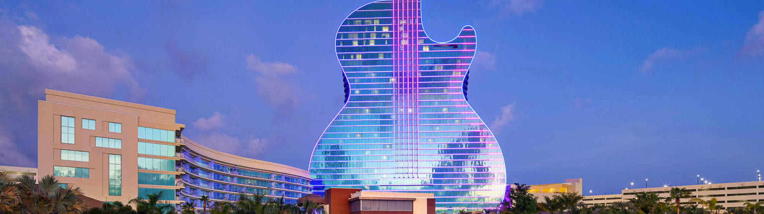 Deasupra orizontului din Florida se înalță maiestuos Seminole Hard Rock Hotel & Casino, cunoscut cu drag și sub numele de Hotelul Chitara (The Guitar Hotel), o adevărată minune arhitecturală. Acest zgârie-nori de 137 de metri înălțime nu este doar un alt hotel de lux; este un tribut unic adus puterii și moștenirii de durată a muzicii rock and roll.