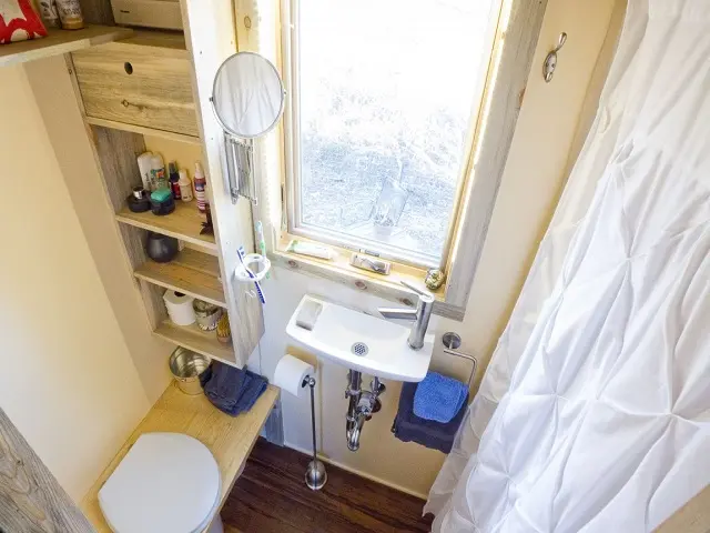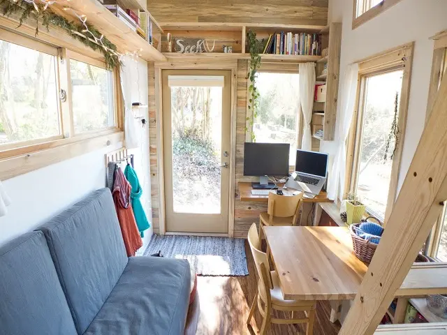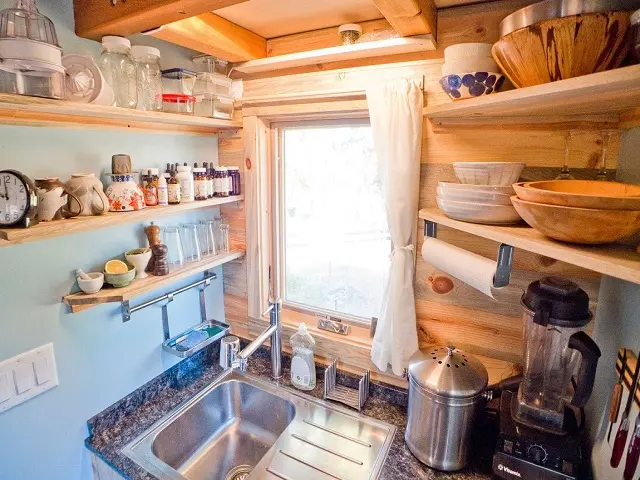 Aceasta veritabila casuta pe roti are pe langa mica zona de living, o bucatarie, o baie si un dormitor. Pare casuta ideala in care sa iti petreci zilele de concediu, in special daca va place sa stati la tara.