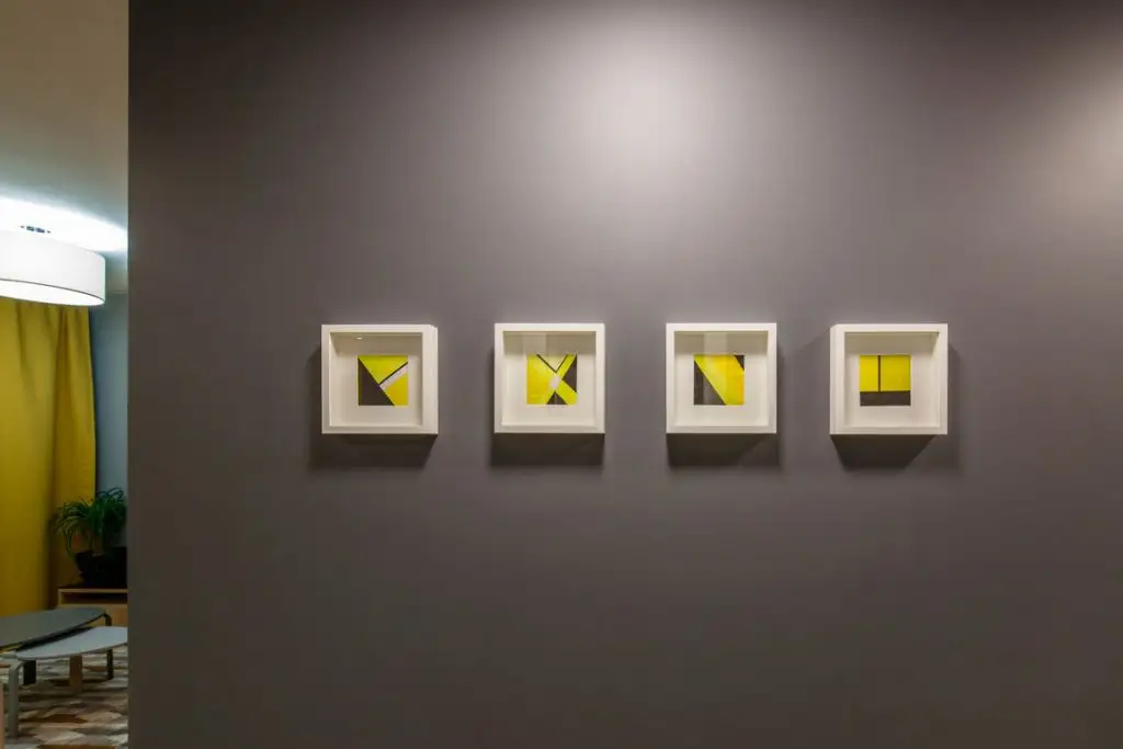Decoratiunile completeaza decorul si ii confera personalitate prin jocul cromatic al galbenului cu griul si albastrul. Spatiul este echilibrat si armonios conturat.