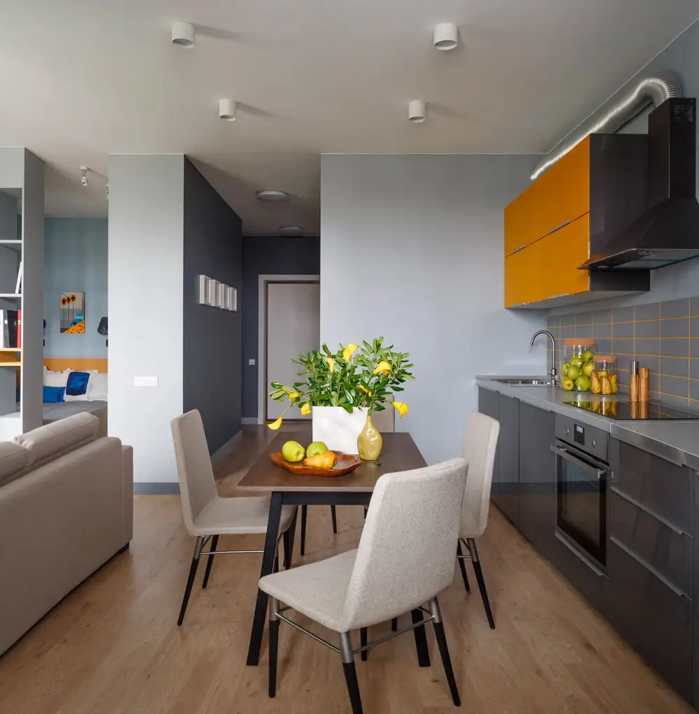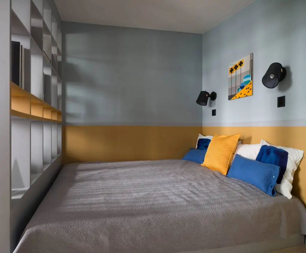 O amenajare colorata ne atrage intotdeauna privirea. Accentele vesele de galben sau tonurile linistitoare de albastru se pot imbina armonios si transforma un spatiu, fie el si de mici dimensiuni precum in cazul acestui apartament de 45 metri patrati. Haideti sa aflam mai multe detalii.