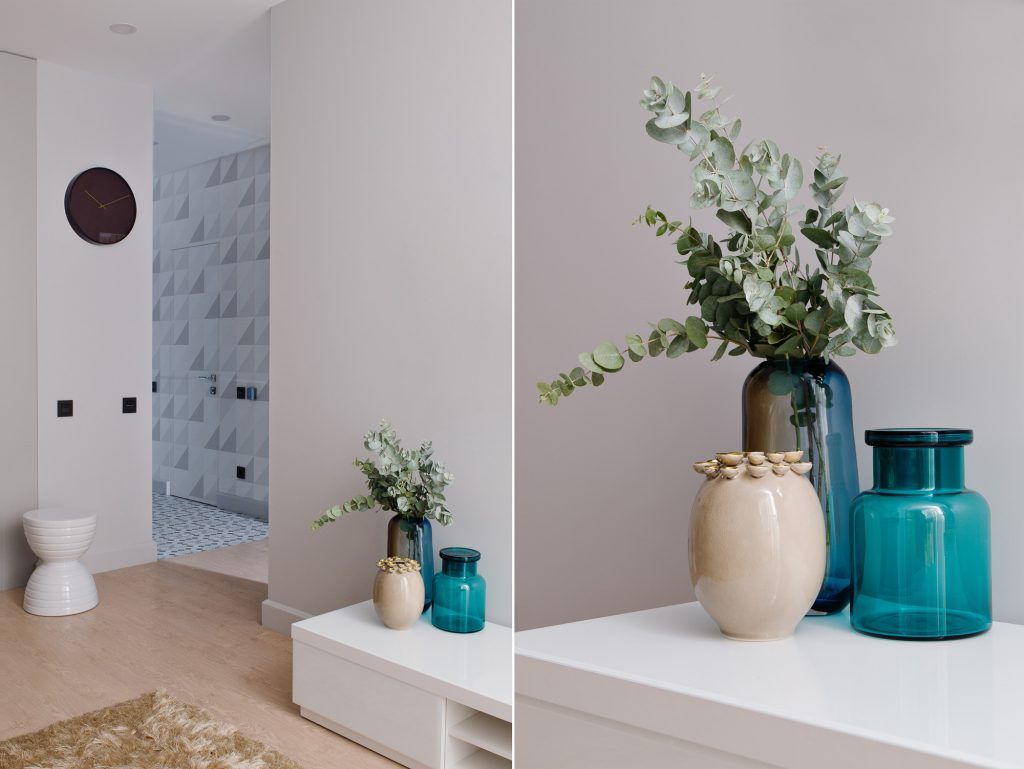 Designerul Julia Kamanina a adus bucuria si calmul pastelurilor in cromatica intregului apartament, peste care a presarat accente discrete de turcoaz si galben in textile sau obiecte decorative din sticla.