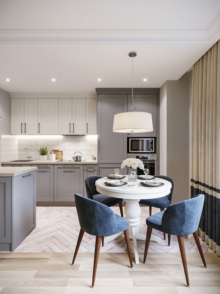 Zona de zi cuprinde livingul, locul pentru luat masa si bucataria tip open space. De remarcat atentia pentru detalii si mai ales pentru designul pieselor de mobilier care amintesc de stilul clasic. Cu toate acestea, intreaga amenajare ramane aerisita si luminoasa, mobilarea fiind echilibrata si axata pe zonele de baza.