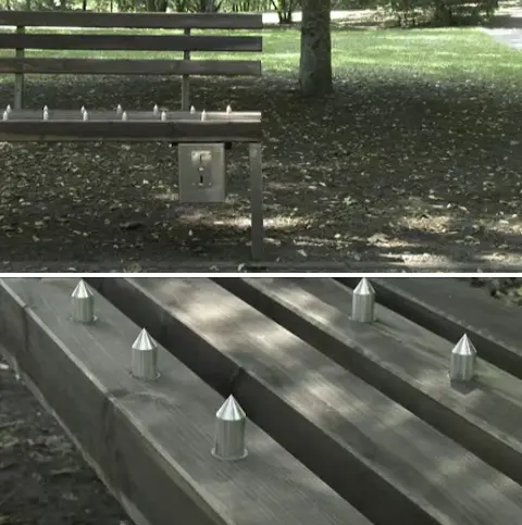 Aparent forma este una clasica, insa aceasta banca este prevazuta cu tepuse din otel. Conceptul de relaxare este foarte ciudat in cazul acesta.