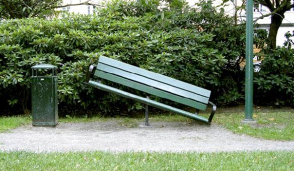 Oare cum te-ai putea relaxa pe o astfel de banca oblica? (Banca se afla intr-un parc din Stockholm)