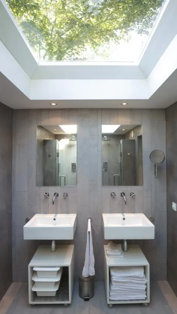 Prima camera in care intram dis-de-dimineata este baia. Acolo ne incepem ziua, asa ca avem nevoie de un spatiu viu, bine luminat si aerisit si care sa ne aduca intr-o stare pozitiva pentru restul zilei.