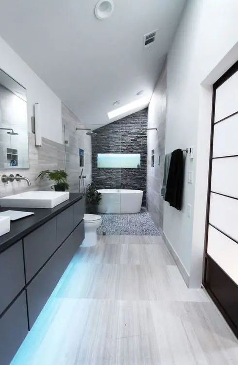 In esenta, este o camera care nu trebuie neglijata sau lasata la coada listei cand ne pregatim de o renovare. Dar daca aveti asta in plan, iata aici nu mai putin de 100 de idei de amenajare pentru bai moderne.