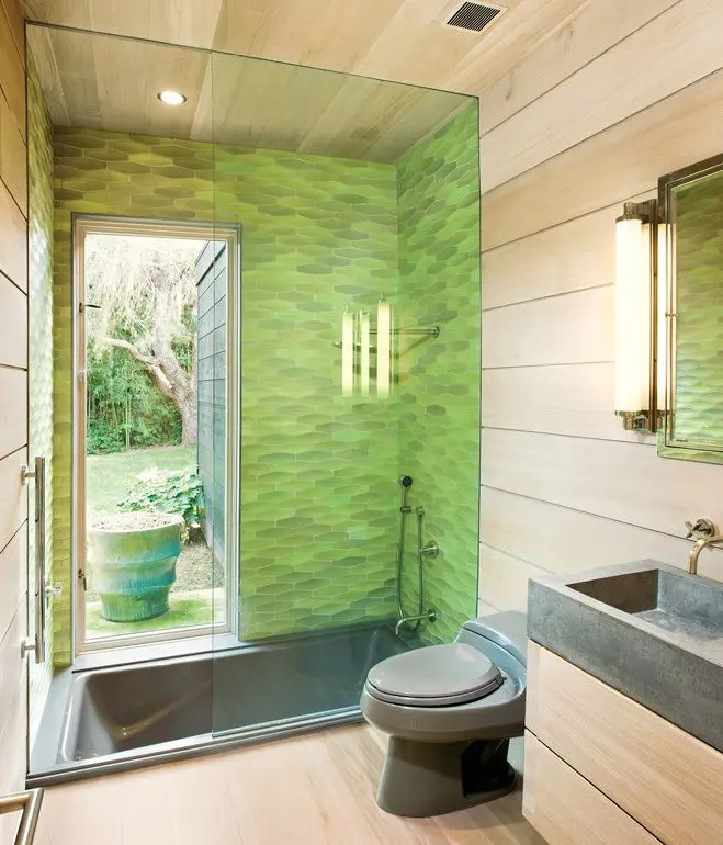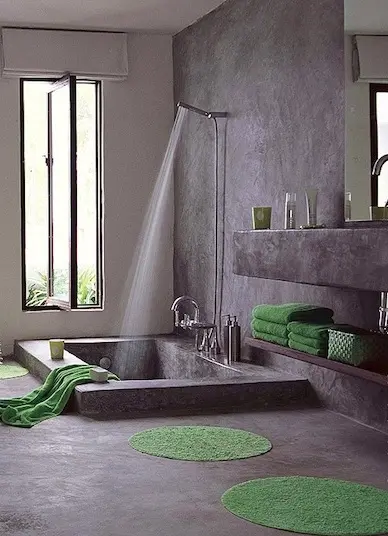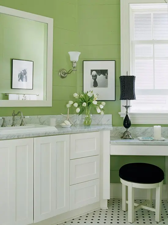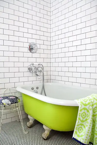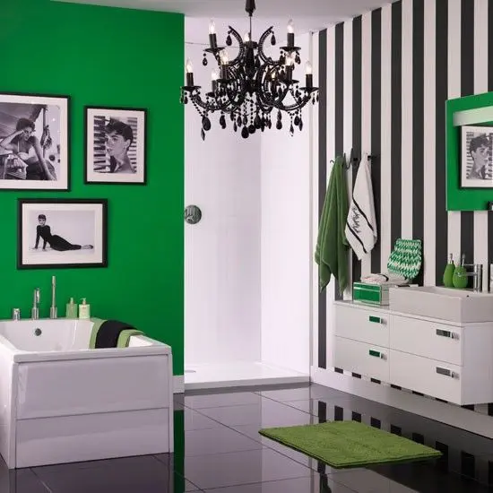 Decorarea baii in nuante de verde nu inseamna neaparat vopsirea peretilor in aceasta culoare. Se poate regasi si in alte elemnte, cum ar fi cada, de exemplu. De asemenea, poti alege anumite accente verzi, fara sa fii nevoit sa renovezi.