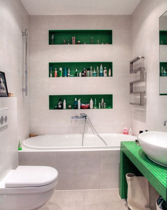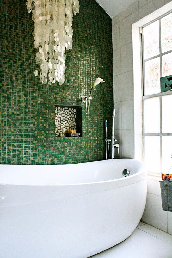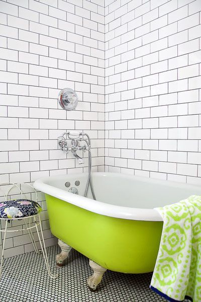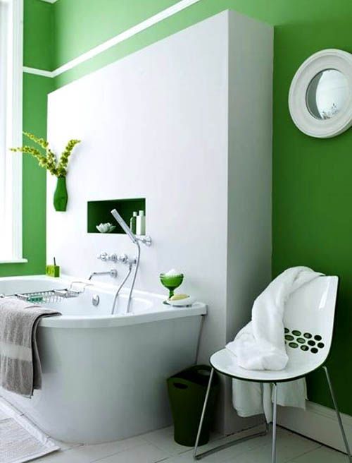Decorarea baii in nuante de verde nu inseamna neaparat vopsirea peretilor in aceasta culoare. Se poate regasi si in alte elemnte, cum ar fi cada, de exemplu. De asemenea, poti alege anumite accente verzi, fara sa fii nevoit sa renovezi.