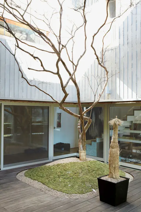 Un copacel pe o podea de parceht, la asta se rezuna decorul acestei curti interioare. Stilul care s-a adoptat este minimialist, care se defineste prin eliminarea obiectelor inutile din decor.
