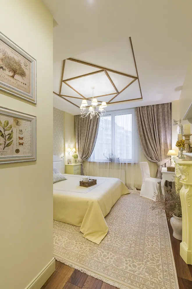 Nuantele deschise, albul imaculat, pattern urile inflorate, semineul fals si accesoriile regasite atat pe acesta, cat si pe suprafata noptierelor, fac palpabila o imagine relaxanta intr-un spatiu intim si elegant.