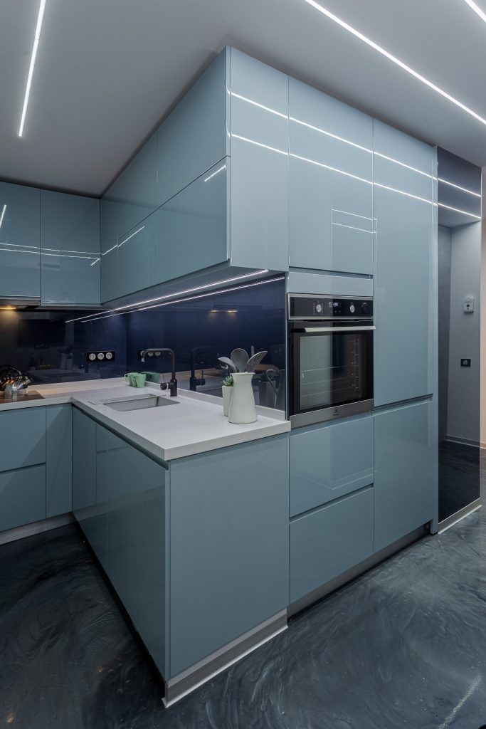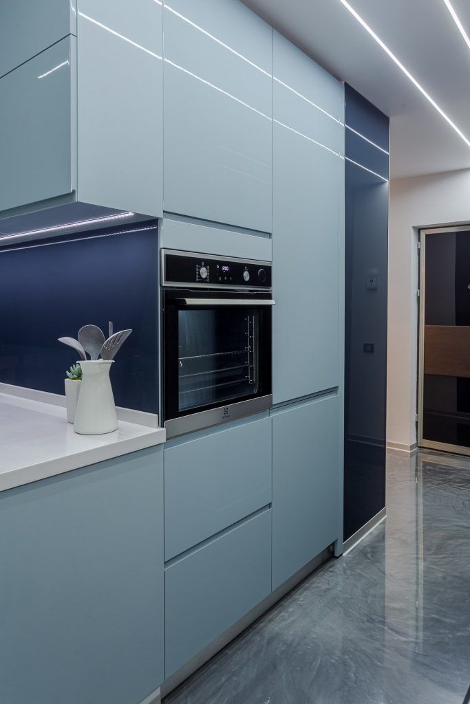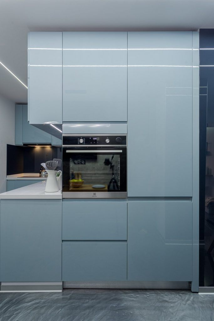 Referitor la bucatarie, arhitectii de la Interiology Design Studio ne povestesc ca aceasta a fost remodelata total pentru a corespunde noilor cerinte ale beneficiarilor: “am mutat frontul initial pe peretii opusi, mobilierul fiind realizat, privit din plan, in forma de Z.