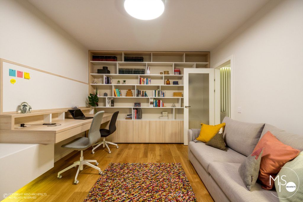 Cu un spatiu extrem de generos, de aproximativ 102 metri patrati, aceasta locuinta isi propune ca, prin transformarea majora realizata de catre specialistii Miso Arhitects, sa respecte atat cerintele tinerilor beneficiari, cat si detaliile fascinante ale amenajarilor actuale.