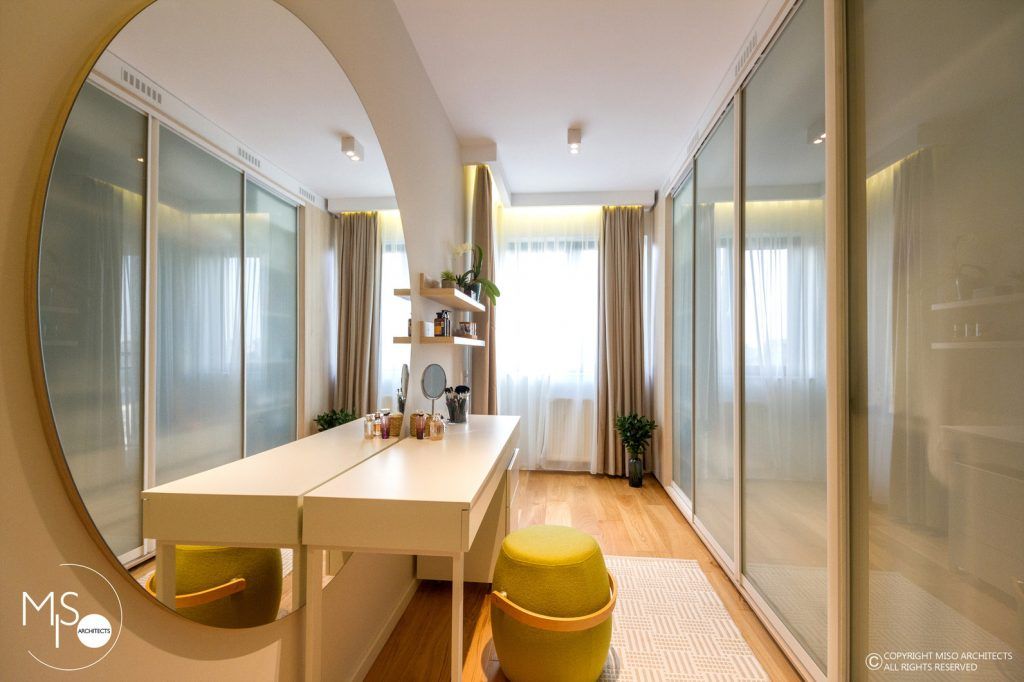 Dressing-ului ii este dedicata o suprafata semnificativa, amenajata practic si modern, metamorfozandu-se astfel intr-o adevarata cabina de proba si machiaj.