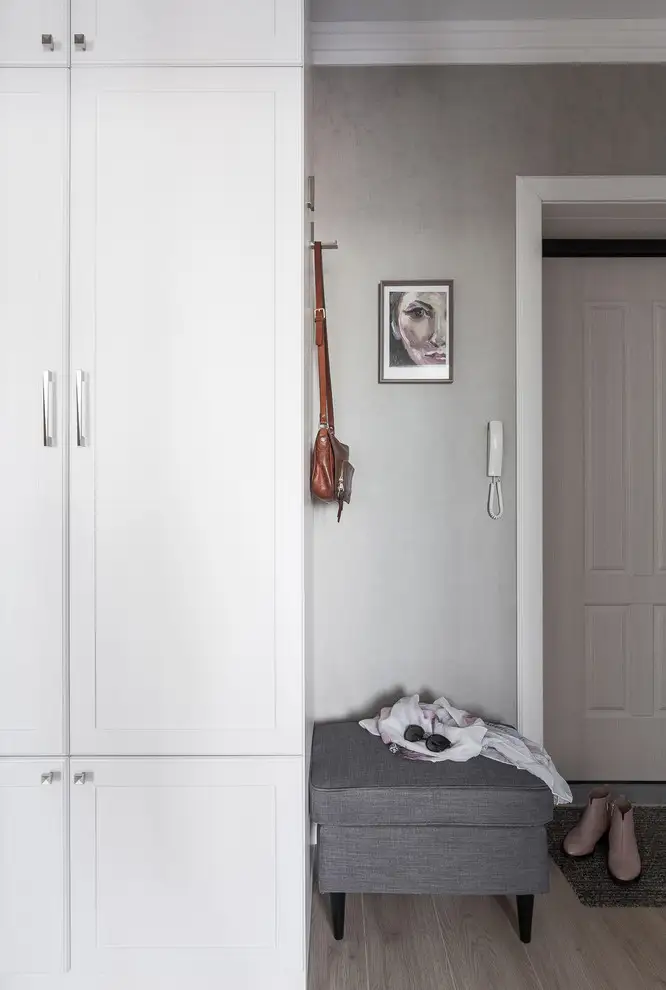 Usile albe, mobilierul in tonuri deschise de culoare si corpurile de iluminat de dimensiuni reduse confera luminozitate apartamentului si senzatia de spatiu.