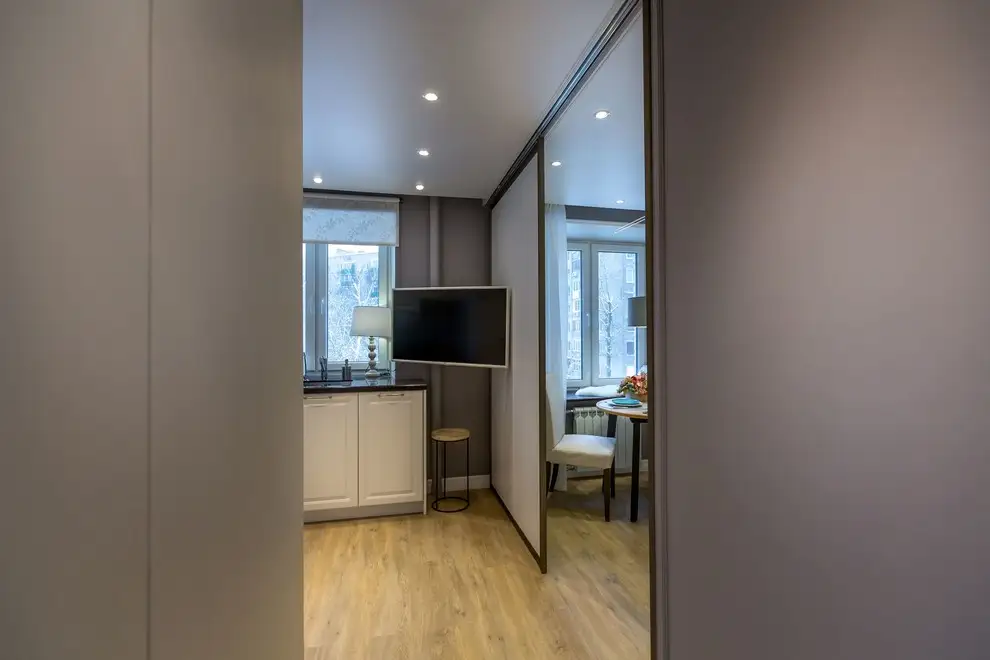Holul principal, bucataria si living-ul formeaza un open space de mici dimensiuni ce are la baza conturarea atmosferii de relaxare intr-un mediu structurat prietenos.